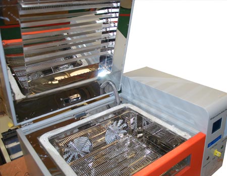 - T200N+采用自動門技術,焊接完成后,倉門自動打開,有效提高生產效率,同時自動門技術配合密封裝置,有效提高桌面式回流焊機爐腔的保溫效果,同時達到了節約氮氣的目的。