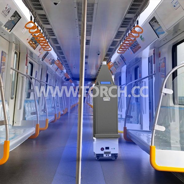 通過大功率深紫外殺毒模塊和機(jī)器人的有機(jī)結(jié)合,開發(fā)出地鐵專用殺毒機(jī)器人。在地鐵停用后,無人值守自動完成地鐵車廂的殺毒。